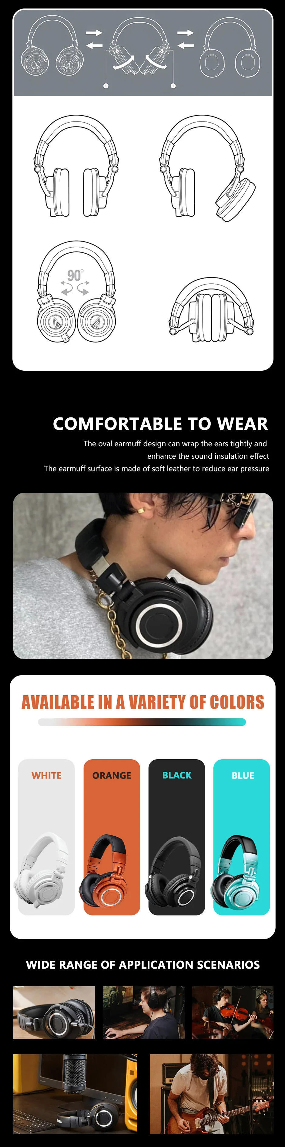 Audio M50X HIFI Earphones Professional Fully Enclosed Foldable Monitoring Headphones Game Music Headset orange colour\
